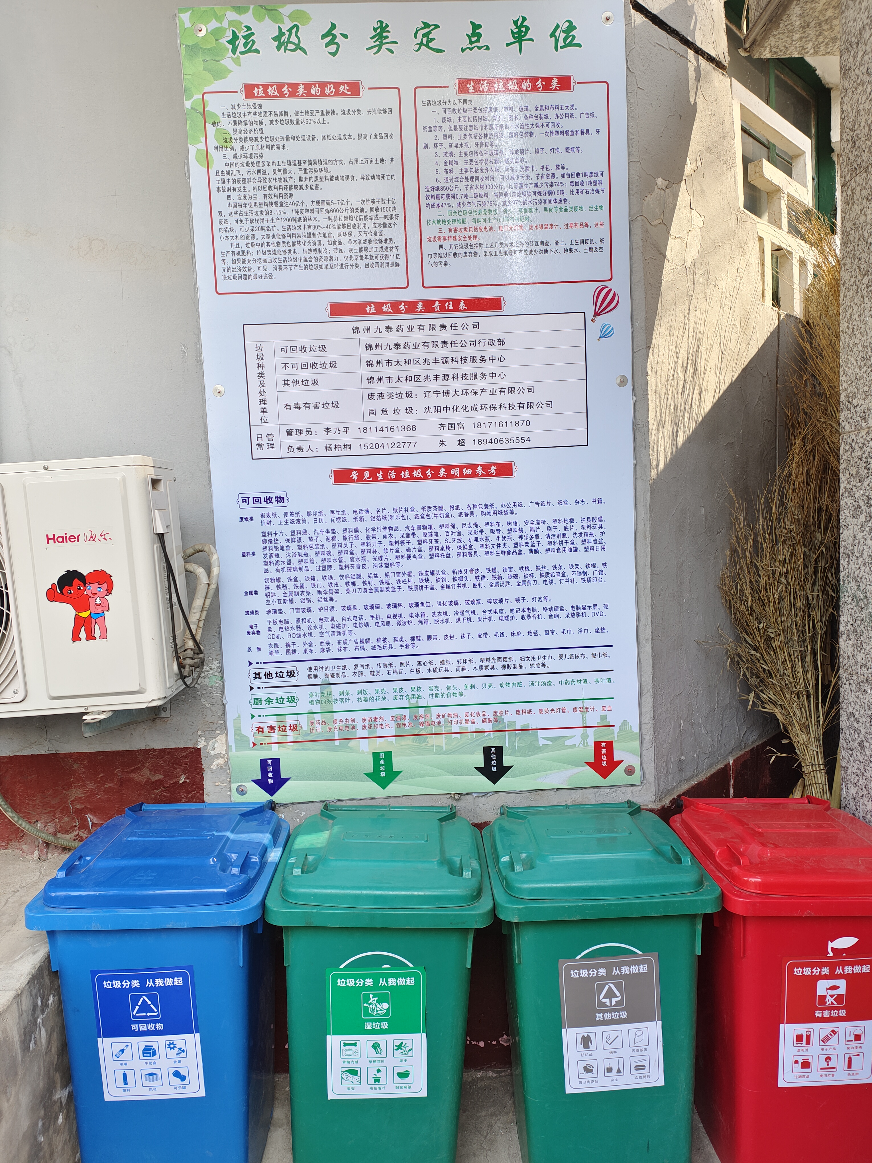 除以上規(guī)章制度的建立外,行政部按照太和區(qū)政府的要求,在與有關(guān)部門及單位的共同配合下,把九泰藥業(yè)作為“垃圾分類定點(diǎn)單位”的相關(guān)工作認(rèn)真迅速的落實(shí)了下去,并在第一時(shí)間對(duì)各個(gè)部門進(jìn)行了垃圾分類相關(guān)知識(shí)的普及。